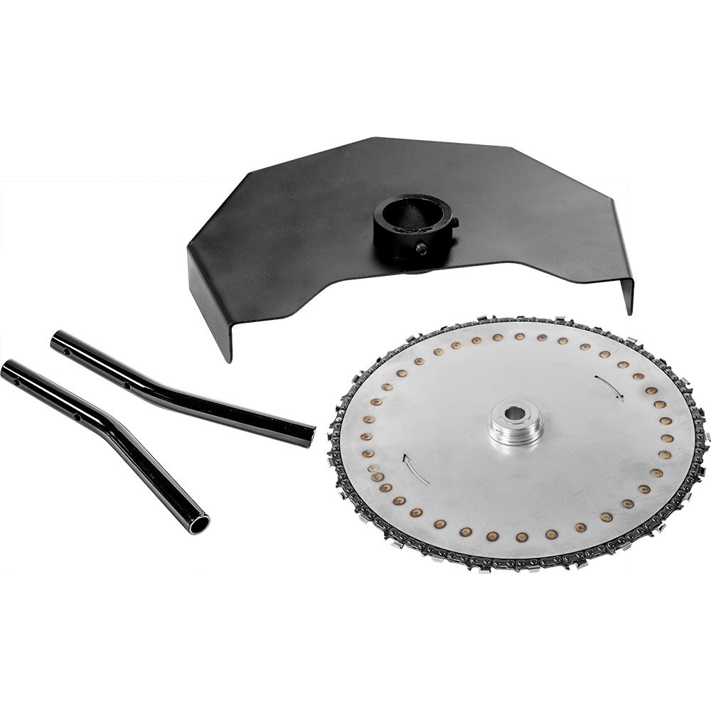 The saw blade, supplied as optional accessory, allows you to cut small trees up to 8 cm in diameter