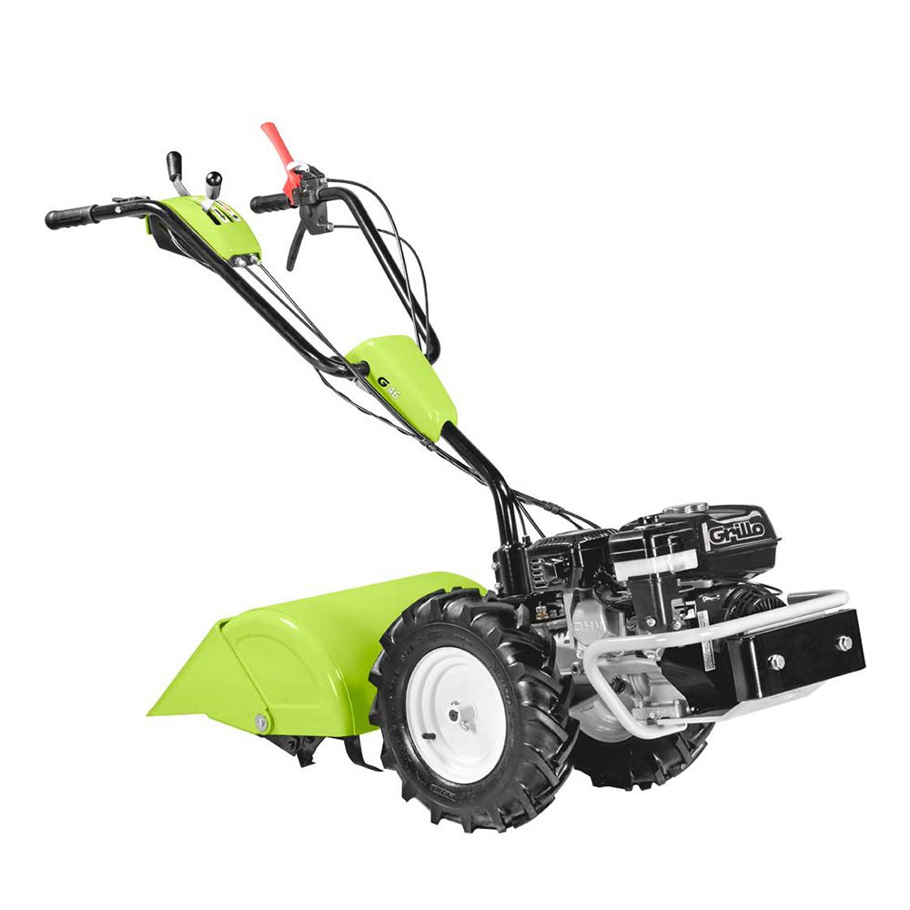The G46 was designed to ensure total safety while working. G 46 comes with the Honda GX200 petrol engine, that is fitted with a robust engine guard. Forward gear and PTO are engaged independently from each other. G46 is equipped with an active coupling, ensuring therefore maximum safety and handiness. When the lever is released the wheels stop immediately whilst the engine keeps on running. The Grillo active clutch guarantees perfect safety work.