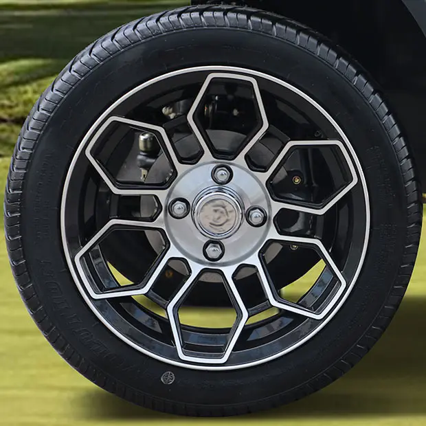 Tara Roadster 2+2 is powered by a 6.3 kW motor paired with an electromagnetic brake, offering reliable performance and safe braking. The efficient 48V 160Ah lithium battery, complemented by a 25A onboard charger, ensures the cart is always ready for use, providing extended operational capacity without frequent recharges.